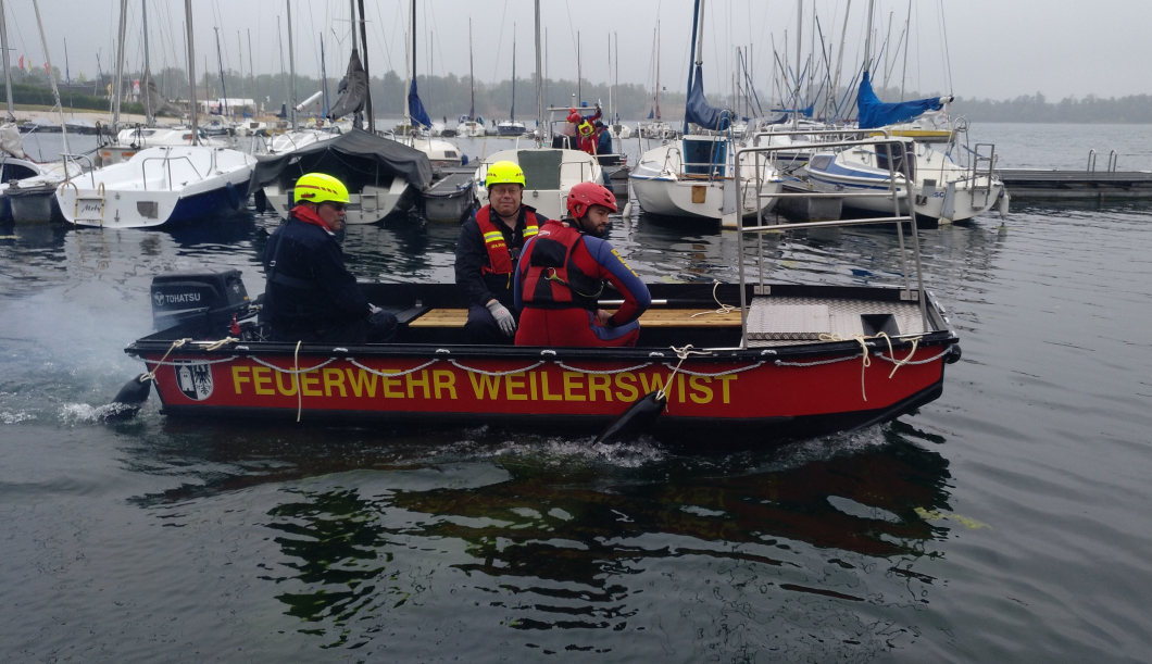 Das Hochwasser im letzten Jahr hat gezeigt, dass auch für Feuerwehren im Kreis Euskirchen der Umgang mit Rettungs- und Hochwasserbooten nicht mehr nur ein theoretisches Szenario ist. Nach Lehreinheiten über die persönliche Schutzausrüstung (PSA), Diskussionen über die Vor- und Nachteile verschiedener Bootstypen und Rettungsmitteln, sowie die theoretische Unterweisung in Fahrmanöver ging es ins und aufs Wasser.