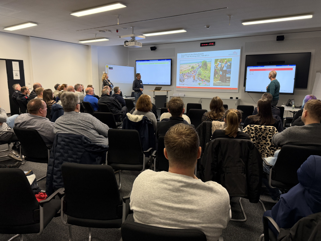 Ein zentraler Programmpunkt war ein eindrucksvoller Fachvortrag zum schweren Busunfall auf der Bundesautobahn 1 im Jahr 2004 bei Euskirchen. Damals war ein dänischer Reisebus mit Jugendlichen verunglückt. 2 Menschen starben, rund 60 wurden verletzt. Der Rückblick auf dieses Einsatzgeschehen zeigte eindrücklich, welche Herausforderungen Großeinsatzlagen für Einsatzkräfte, Verwaltung und Stabsarbeit mit sich bringen – und welche Lehren daraus gezogen wurden.